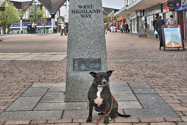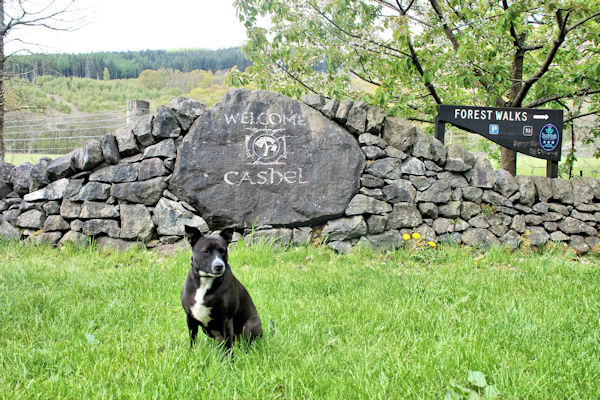 Drymen ~ Sallochy Walked through Garadhban Forest and saw some really nice people who made a big fuss of me and one man even picked me up for a cuddle! it started raining so we put our cagoules on. Pets at Home donated me one for the walk, which was very kind of them and it certainly kept me dry. We couldn't go over Conic Hill because no dogs allowed during the lambing season so we followed the detour signs to Milton of Buchanan, stopping for lunch at the pub and then on to Balmaha. We were walking at the side of Loch Lomond and Big Guy got us a bit lost but then he found the path to Milarrochy and onto Cashel. I went for a swim in the Loch to cool my hot feet. The bed and breakfast was really nice with plenty of room for us. The house next door had some wolf type dogs. All the day we have heard cuckoos calling. |