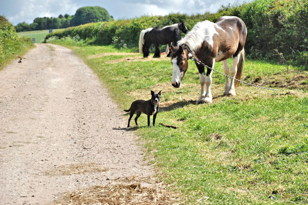 Nuffield ~ Chinnor 11 milesA very nice walk, starting off uphill through a field of oil seed rape and past Ewelme Park where I saw a Peacock. It was stood on the hedge looking down on me making a horrible loud noise. Stupid bird. Walked through some woods where I saw some more squirrels to chase. I had a play with a big black Labrador and a Spaniel. The path here was very slippy and stoney so Boss Woman and Big Guy had to be careful walking down. I was okay, I just ran down as fast as I could to show them how to do it. Further on at the side of the path we saw a gypsy caravan and some horses, so I went to have a sniffy sniffy with one of the horses. It was MASSIVE. The path itself was a bit uneven where it had been worn away by hundreds of feet and paws walking on it over many years. Further on we all had a quick nap on the grass before we walked past the chalk quarry, down into Chinnor and on to Henton where we stayed the night. On the way down, Big Guy fell off the very narrow pavement. He CAN be a bit clumsy sometimes ... Went to Peacock pub for tea, where I got to share Big Guy's dinner and everyone made a big fuss of me. The Bed and Breakfast where we stayed was a really old house. I thought it might have been haunted but I didn't see any ghosts, maybe because I fell asleep straight away so I probably missed them. Wednesday