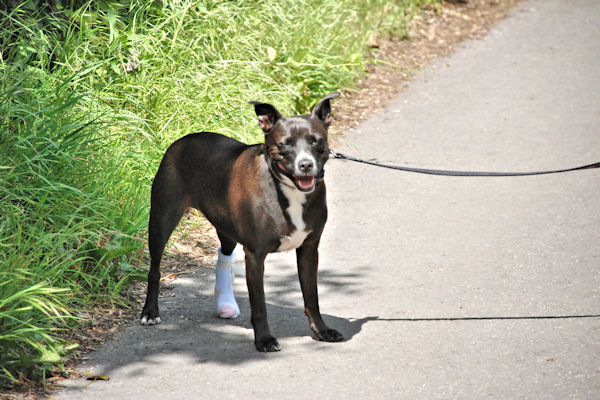 12 miles Set off in the heavy rain this morning so Boss Woman put my raincoat on, the one that Pets at Home donated me when I walked the West Highland Way last year. Walked uphill out of Ogbourne St. George, through some trees and on an interesting ancient sunken path and then still walking uphill to Round Hill, then over the M4 motorway to Fox Hill and then on to Charlbury Hill (where there is supposed to be a famous crop circle, but we never saw it). We almost got run over by 2 idiotic men on bikes, who came down the hill so fast that they almost skidded into us. Boss Woman called them stupid idiots. I climbed on the burial mound at Wayland Smithy and had a good sniffy walk around but didn't find any bones or see any ghosts, luckily. A nice level walk then on to White Horse Hill at Uffington where Fenella met us in her car to take us to her very nice comfortable B & B in Uffington village. Got to go to the Fox and Hounds pub for tea and shared Boss Woman's chicken and bacon dinner and some of Big Guy's ham egg and chips. Mmm very tasty it was as well. Sunday 8th May A bit chilly and damp this morning. Very nice steady walk past a hill fort and over the top. Most of the day we had a view of Didcot Power Station, but the walk was still very nice until we got nearer East Hendred, with crab apple, sloe and hawthorne blossom giving a very nice smell all the day and making me sneeze. A big black labrador pinched my stick as well but it's owner told it off so I got it back and 2 fat Jack Russell dogs tried to nip me but I kept out of their way. Walked down to East Hendred passing the Harwell Nuclear Research Laboratory and always with Didcot Power Station in view, so it wasn't very pleasant AND a Collie kept trying to bite me but I growled at it just to let it know it had better NOT ! The walk down to East Hendred was 2.5 miles not the 1.25 as the woman at the B & B woman had said and it was a long downhill unpleasant walk. Susie Turnbull the B & B woman was supposed to pick us up but changed her mind a few days before. If Boss Woman had known she was going to be difficult she could have booked somewhere else. It was horrible staying at Susie Turnbull's Monks Court B & B. She was not very friendly at all. The room where I was supposed to sleep was smelly with the fumes from the Central Heating boiler which seemed to have some sort of problem. The room where Boss Woman slept was dirty and there was even a birthday card chewed by mice left under the bedside cabinet that had been there a long time, along with a lot of filth as well. The mattress had black bits all over it and Boss Woman complained that the mattress cover was dirty and torn, the pillowcases were unironed, rubbish from the previous occupants was left in the bathroom bin and that the fire escape was supposed to be through the very narrow window or the garage. Boss Woman was so impressed that she took loads of pictures of the room to show everyone. Boss Woman didn't like it either when the cat was stalking around the breakfast table and she was only given 1 slice of toast for breakfast. We were all really glad to leave there.She was a stingy miserable woman. Monday 9th May A very nice walk with lovely views and a nice wide grassy path. Walked through a tunnel under the A34 where some morons had scrawled scruffy graffitti over a beautifully painted mural depicting local scenes. There was a stinking midden in a field that we could smell half a mile away. Met Daisy and Jess, 2 labradors, one of which was a Rescue dog like me. Downhill past a dismantled railway, on an ancient sunken path then climbed steeply uphill, then down again. Stopped for lunch in a lovely meadow and saw some white butterflies with orange wing tips, which I enjoyed chasing but I didn't catch any though. Walked further on and then over a bridge into Streatley where Boss Woman bought some sun glasses because she had very sore eyes with sunburn ~ she didn't bring hers because she didn't expect it to be so hot and sunny. THEY bought an ice cream but didn't share it with me, all I got was a stale doggie biscuit and a shrare of their sandwich. Walked on the Thames path up to Goring and South Stoke. My back foot got really sore and cut from the very sharp flint path we have been walking on so Boss Woman put some Tea Tree ointment on a a baby sock to pad it ... not very fashionable but it DID stop it hurting. I saw (and chased) loads of squirrels, but they ran up the trees where I couldn't reach and we walked on another ancient sunken path called Grimms Dyke. When we got to North Stoke, Eric the young Border Terrier kept following us so his Boss Woman came and picked him up and took him home. Stayed at Diana's lovely Bed and Breakfast which was nice and clean and welcoming. I was glad when we got there because it was a long walk today and I was very tired. Tuesday